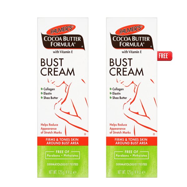 Firm & Tone Your Bust Area Even After Pregnancy & Weight Loss.Palmer’s Cocoa Butter Bust Cream is a specially formulated cream that smoothes on like a gel. It will firm & tone your bust area even after pregnancy & weight loss. Made with a unique blend of pure Cocoa Butter, Shea Butter & Vitamin E, to maximize your skin’s moisturization, while Collagen, Elastin & other proven ingredients help support the skin around the bust area & increase tone & firmness.